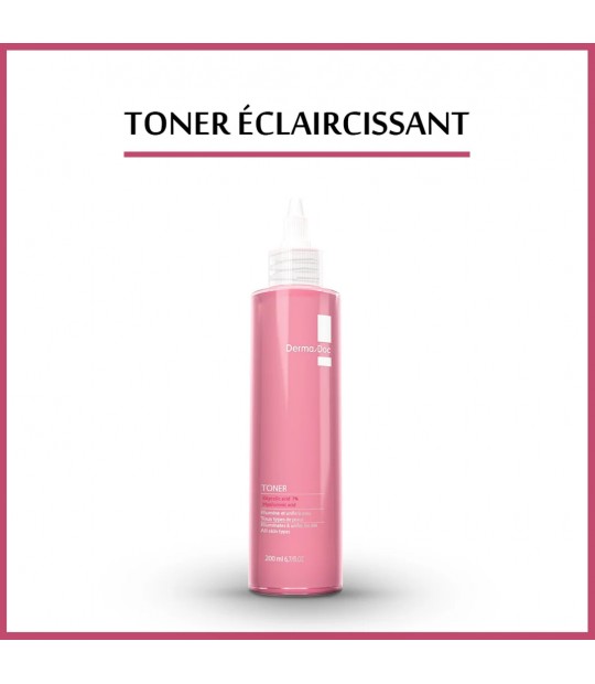 DERMADOC toner exfoliant associe 7% d’acide glycolique reconnu pour son action resurfaçante à l’acide hyaluronique pour maintenir l’hydratation et apaiser la peau .