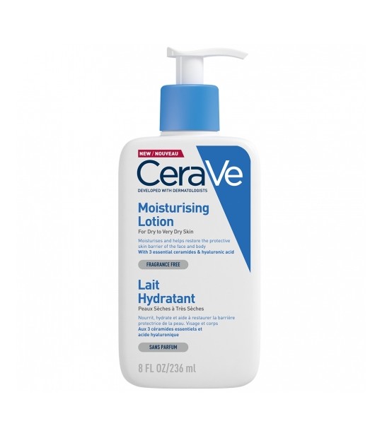 Développé avec des dermatologues, le Lait Hydratant CeraVe nourrit, hydrate et aide à restaurer la barrière protectrice de la peau. Ce soin nourrissant, enrichi aux 3 céramides essentiels et acide hyaluronique hydrate la peau en continue, dès la première application. Sa formule sans parfum convient aux peaux sensibles. Texture légère et fluide au fini non gras.
